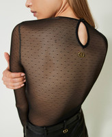 Stretch plumetis tulle bodysuit, fitted, with round neck, long glove sleeves, lined. This item is part of the Exclusive capsule collection.