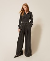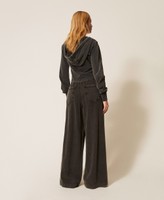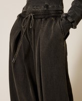 Actitude collection trousers in dyed and washed cotton plush fabric. Elasticated waist with drawstring, slant pockets, wide palazzo fit.