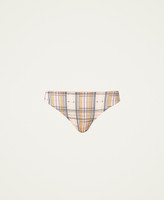 Printed Brazilian briefs made from microfibre charmeuse with solid colour at the waist, doubled back and tiny bow.
