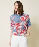 Dual-use jumper (can also be used as a cardigan) made from printed cotton mesh, with logo buttons.
