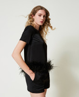 - 100% viscose. Lining: 100% polyester. Material 2: 100% ostrich feathers