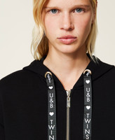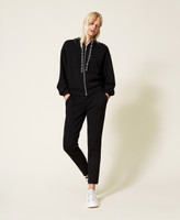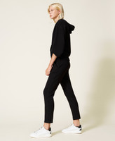 Light scuba tracksuit consisting of hoodie with logo drawstring and cigarette trousers.