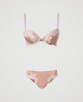 - 92% silk 8% elastane. Details: 85% polyester 15% elastane. Embroidery: 85% polyester 15% elastane. Padding: 100% polyester. Material 2: 92% silk 8% elastane. Material 3: 100% cotton.