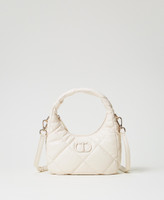 Small hobo bag made from padded and quilted soft and lightweight faux lambskin, zip closure, tonal varnished Oval T logo, handle, removable and adjustable shoulder strap, lining.