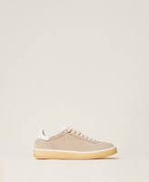 Suede trainers with contrasting tab and heel, rubber sole.