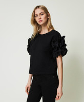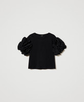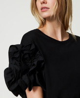 Actitude collection jersey t-shirt with vertical poplin ruffles on the sleeves, crew neck, straight fit.