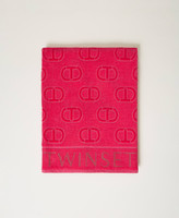 Beach towel made from cotton jacquard terry with Oval T logo all over and lurex thread logo lettering along the edges.