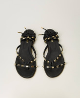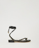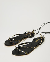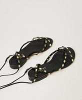 Gladiator thong sandals with studs, criss-cross laces, tunit sole.