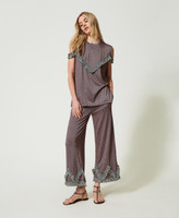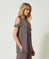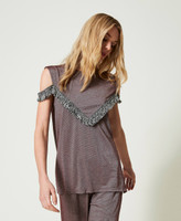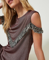 - 57% viscose 40% metallic polyester 3% elastane. Material 2: 100% polyester
