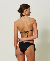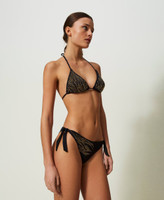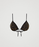 Padded triangle bikini top with removable cups, appliquéd rhinestones with animal pattern rhinestones.