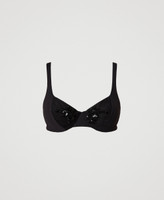 Non-padded underwired bikini top with sequinned paisley pattern with tiny corals, and adjustable shoulder straps.