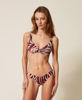 Underwired bikini top with lurex and all-over graphic zebra print, exclusive to Twinset. Non-padded, with crossover front, adjustable high shoulder straps with ring attachment, metal hook fastening on the back, solid colour lining.