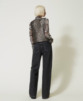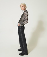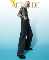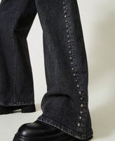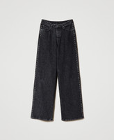 Actitude collection wide leg black jeans with light wash and side embroidery with studs and little stars.