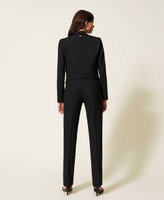 - 53% polyester 43% wool 4% elastane. Material 2: 68% acetate 32% polyester