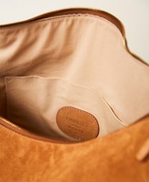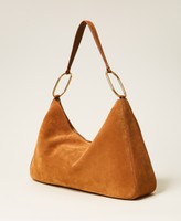 Большая сумка-хобо Liliane из телячьей замши с обработкой против выцветания. Корпус выполнен с простым клинчиком, на подкладке, с ручкой через плечо, дополненной овальными кольцами с логотипом, застежкой-молнией и логотипом горячего тиснения.