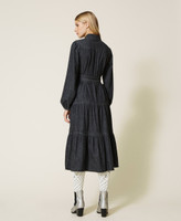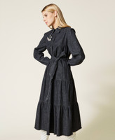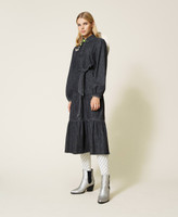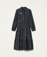Длинное платье из коллекции Actitude из легкой джинсовой ткани с застежкой на пуговицы, юбкой с оборками, ювелирными брошами и поясом.