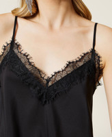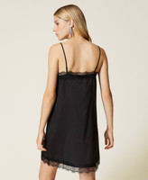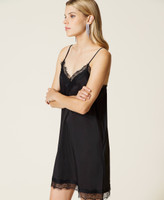 Платье-комбинация из коллекции Actitude из крепдешина с V-образным вырезом, подолом, отделанным фестонным кружевом, и регулируемыми бретельками.