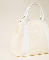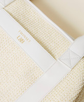 Пляжная сумка-шоппер из ткани с эффектом плетеной соломки с боковыми сторонами, закрывающимися внутрь, отделкой и ручками с эффектом кожи, застежкой на магнит, плоским внешним карманом и буквенным логотипом, нанесенным методом горячего тиснения золотой фольгой. Она добавит изюминку в образ из платья-кафтана и шляпы.