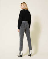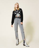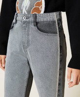 Двухцветные пятикарманные джинсы из коллекции Actitude с контрастными деталями и отделкой стразами по швам.